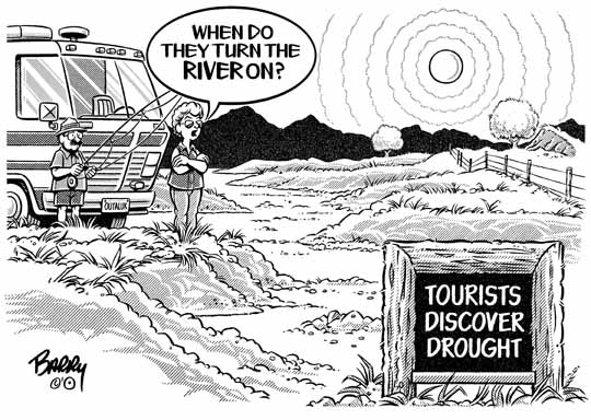 April 20, 2018 Me again ... Heard from Russell at the Lamesa [TX] Press-Reporter this AM in response to the morning's #1 SPRING cartoon RE "INUNDATION." He wrote: "After less than 2 inches of rain in the past six months, and planting time approaching, some inundation would bring exultation for farmers in West Texas. "But that’s the 'nature' of agriculture." And so, I offer another DROUGHT toon here for Russell in Lamesa, Wickenburg Patsy & Lia in tinder dry Oklahoma. Seems to me that these guys are experiencing the long-heralded Global Warming in a very nasty manifestation. BTW: Have you guys tried the old trick of washing your cars? HA! Wet or dry or somewheres between, have a swell weekend — & keep grinnin' ... :))) barry P.S. On 2nd thought, I'm gonna send one more DROUGHT toon today [do I hear two more???] which will follow shortly. |