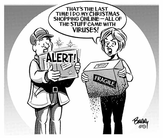 November 30, 2018 Good morning — me again … The ONLINE SHOPPING cartoon I’m attaching here is a good example of the wide array of Pre-Christmas material available to you on my website. I chose this particular Classic as an example because, in retrospect, I realized how heavily I'd loaded my earlier offering with BIG CITY SHOPPING toons — & nothing RE all the business that leaves town via online sales. GIFT VIRUS ~ Yep, this toon is ridiculous to the point of being pretty funny. It also questions the efficacy of buying stuff sight unseen [& virus-uprotected?] — besides being a real hassle to return! You’ll find this cartoon, plus the three I sent yesterday & 13 Pre-Christmas others, in my "GETTIN’ READY for CHRISTMAS" Category at: http://www.barryscartoons.com/a_CHRISTMAS_GettinReady.html Buckle up, guys — the Holidays are definitely here. HA! :))) barry |